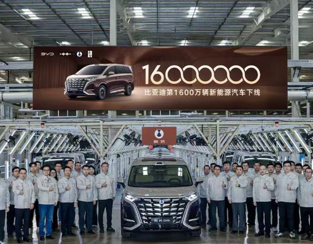 4月17日,据比亚迪汽车官博消息,比亚迪(002594.SZ)第1600万辆新能源汽车下线,全球首台第二代腾势D9下线。