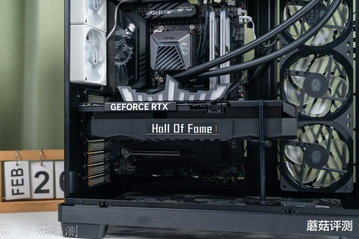 ▼接着把影驰RTX 5070 Ti名人堂黑魂X装进机箱,这张卡三槽厚,很给力。