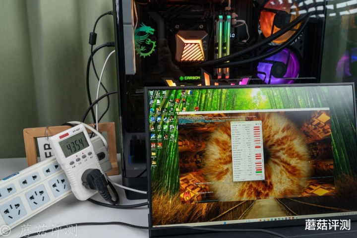 ▼甜甜圈的负载略微低于3Dmark的TS模式的压力测试,整机输入功耗在435W左右。
