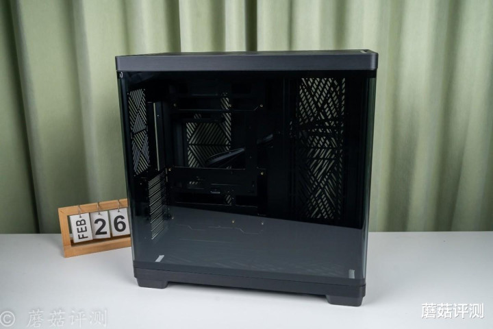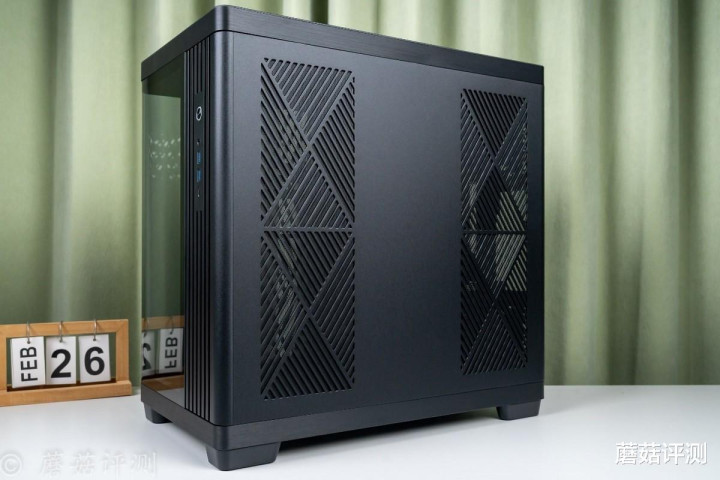 ▼机箱侧面是一大块的侧透玻璃,双曲面热管,且有熏黑处理,质感很不错。