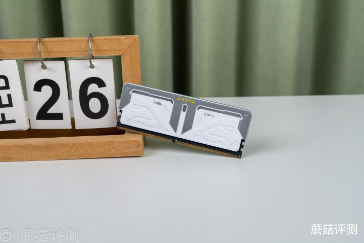 ▼内存的金属马甲采用全包设计,底部侧面是白色的涂装,烤漆质感,顶部是银色的,拉丝质感。