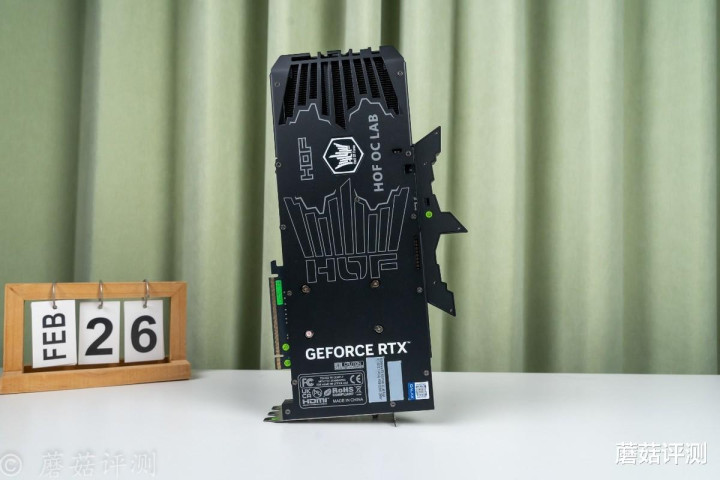 ▼显卡背面的金属背板涂装也是非常复杂,中间是影驰经典的HOF皇冠LOGO,顶部的那个小皇冠还支持ARGB灯效,设计拉满。
