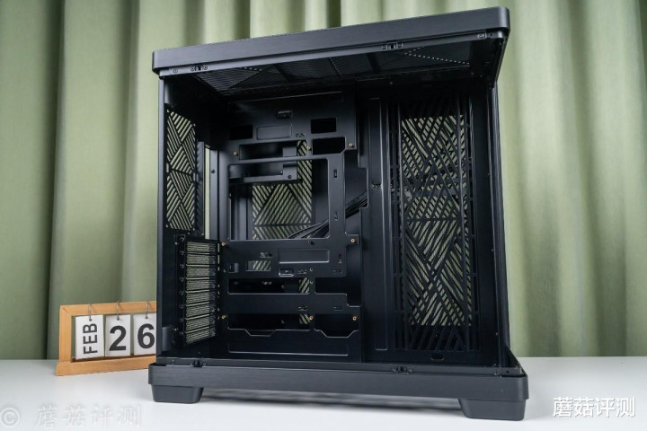 ▼机箱内部空间巨大,左侧是主板固定位,支持背插主板,上侧、侧面、下侧均支持最大140mm*3机箱风扇或水冷排安装,拓展性拉满。