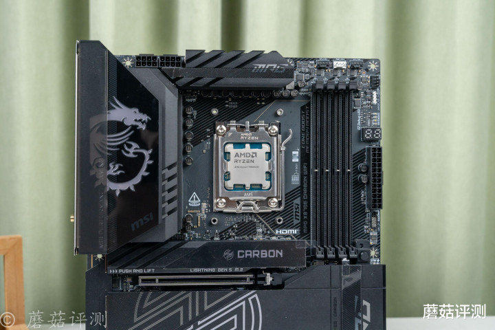 ▼主板用的是微星的MPG X870E CARBON暗黑,这块主板的综合产品力很强,预算到了这个价位,唯一不选的理由是它不是白色。
