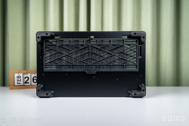 ▼机箱底部,四角说硕大的L型防滑脚垫,上侧是支持快拆的防尘网。