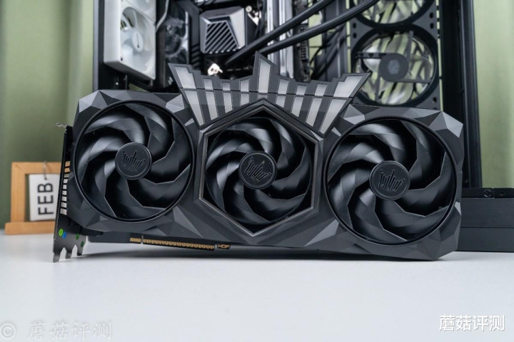 ▼显卡默认水平安装,并在显卡的尾部撑一个原装支架,并把显卡的皇冠部分放到显卡背板上。